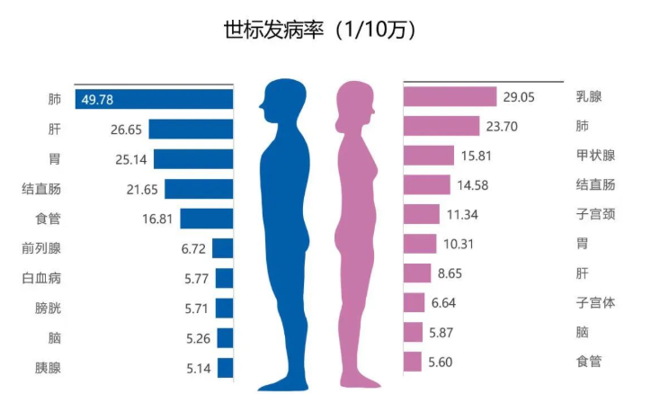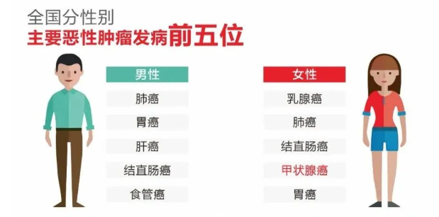 根据世界卫生组织国际癌症研究机构发布的全球最新癌症负担数据,我国癌症新发病例457万例,平均每天有 1万多人会被诊断为新发癌症,平均每分钟就有8人确诊.其中甲状腺癌成为我国增长最快的恶性肿瘤之一,平均每年增长20%左右,也是我国女性新发癌症的第四位.女性中发病率最高的为乳腺癌,占新发癌症的16.72%.