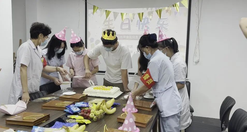 生日会上,熟悉的生日祝福歌唱响时候员工们露出一张张幸福的笑脸,大家围在一起,伴着甜美的蛋糕和精致丰富的生日大餐,许下这一年最美好的心愿,共同分享着生日的喜悦,感受着杭州甲康医院这个大家庭的温暖。